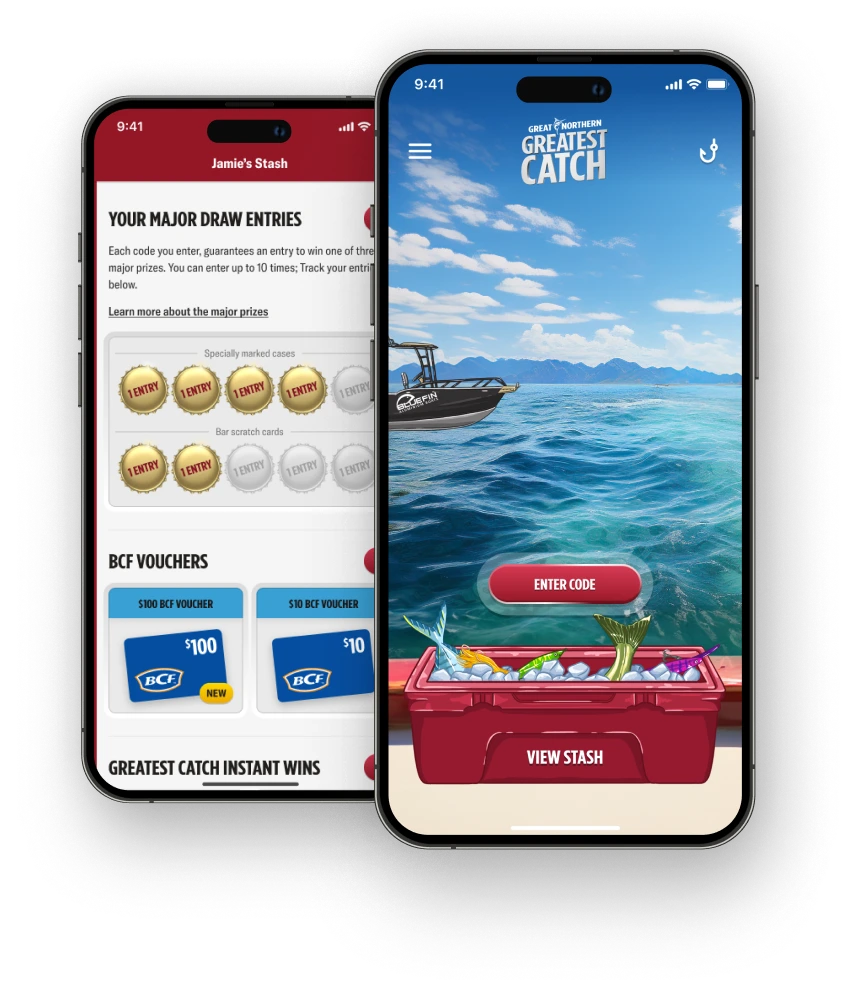 Every code from specially marked cases wins a BCF voucher! If you're using a code from a bar scratch card, you have a 1 in 3 chance to win a BCF voucher. Plus each eligible code gives you the chance to win thousands of additional prizes. Download the app and start fishing today!