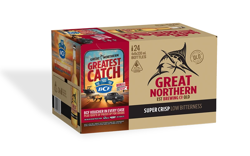- Great Northern Case: Purchase a specially marked case of Great Northern, download the app, and enter the code found inside the case for a guaranteed instant BCF voucher win worth $10, $20 or $100.